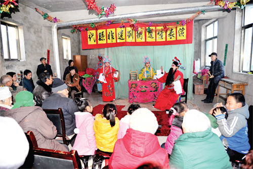 為了搶救劉街道情“非遺”劇種,弘揚(yáng)和傳承雁門文化,新高鄉(xiāng)劉街村“ 兩委”班子多方籌措資金,購買服裝道具和文武場(chǎng)樂器,于近期成立了由30多人組成的劉街道情劇團(tuán),由老藝人傳授技藝。他們經(jīng)過3個(gè)多月的精心排練,已排練出《李大開店》、《夜宿花亭》、《雷橫磕枷》、《大上吊》、《劈棺》、《?;稹返?個(gè)劇目,將于元宵節(jié)期間亮相于縣城街頭,向全縣人民匯報(bào)演出。圖為熱心觀眾觀看劉街道情《李大開店》劇目的排練。(石俊文 劉睿 攝)