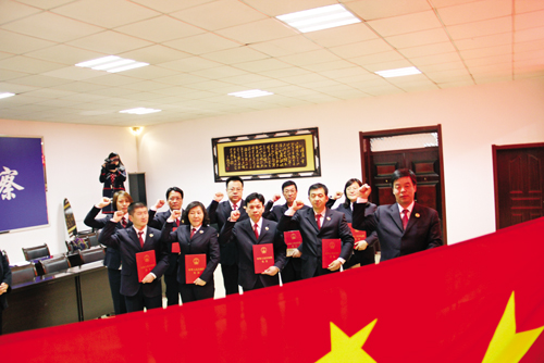 2 月25 日,岢嵐縣檢察院舉辦首批入額檢察官宣誓儀式。該院是忻州市檢察系統(tǒng)2015 年司法體制改革首批試點單位。一年以來,經(jīng)過層層選拔,首批10 名檢察官脫穎而出,市檢察院和岢嵐縣人大、政協(xié)領(lǐng)導(dǎo)到場祝賀,希望入額檢察官擔(dān)當(dāng)重任,充分發(fā)揮職能作用,維護(hù)好社會公平正義。(程玉光 攝) (責(zé)任編輯:李冬梅) |