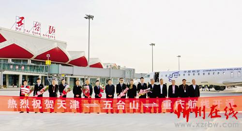3月27日下午17時(shí)左右,由華夏航空公司CRJ900型飛機(jī)執(zhí)飛的G52785航班降落在五臺山機(jī)場,這標(biāo)志著天津—五臺山—重慶航線正式開通,首航航班往返客座率均超過95%。該航線每周4班,周一、三、五、日各往返飛行一班。重慶—五臺山—天津時(shí)刻為:重慶14時(shí)45分起飛,17時(shí)05分抵達(dá)五臺山機(jī)場,18時(shí)55分從五臺山起飛,19時(shí)35分抵達(dá)天津;天津—五臺山—重慶時(shí)刻為:天津20時(shí)30分起飛,21時(shí)20分抵達(dá)五臺山機(jī)場,22時(shí)00分從五臺山機(jī)場起飛,00時(shí)15分抵達(dá)重慶。另外,??凇迮_山的航線從3月27日起調(diào)整為海口—桂林—五臺山。(趙夢嬌 攝)
