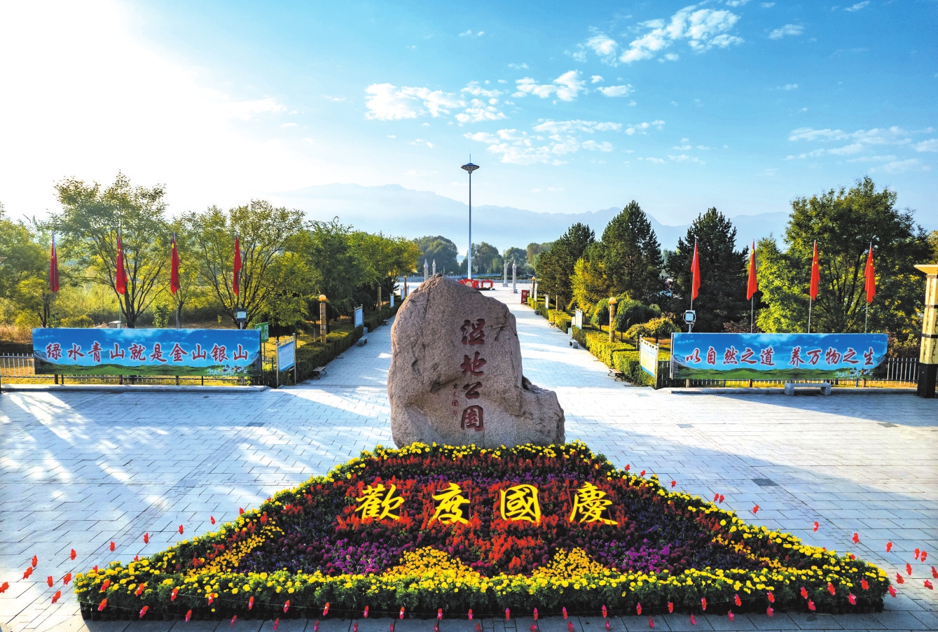河曲縣臨隩公園國慶主題花壇。張玉明攝
