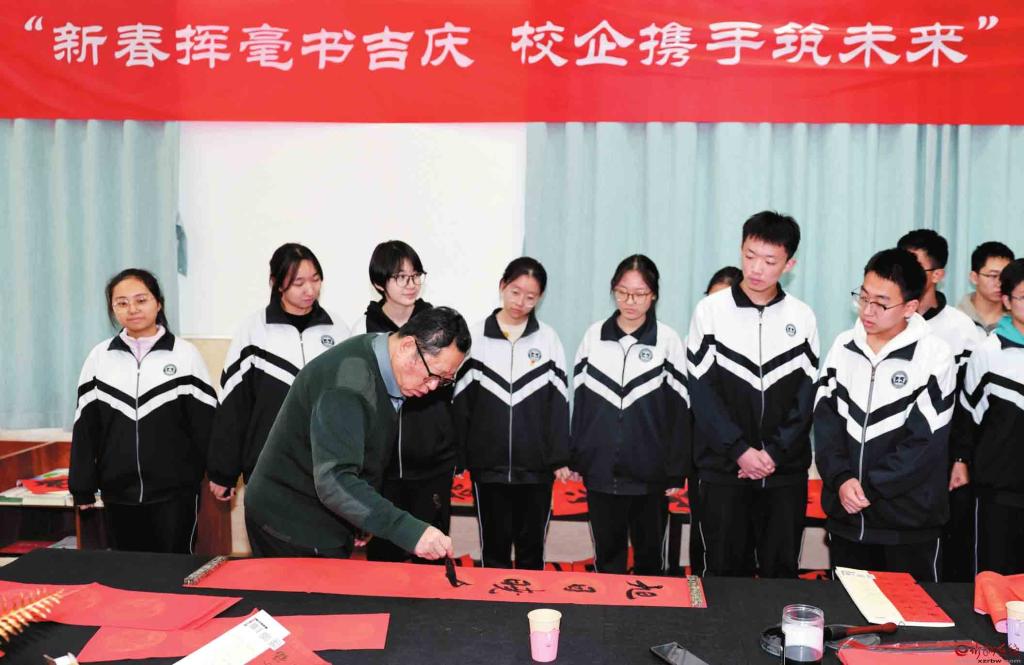 近日,忻州新華書店和忻州現(xiàn)代雙語學(xué)校聯(lián)合舉辦了“新春揮毫?xí)獞c校企攜手筑未來”書寫春聯(lián)活動。(記者張存良攝