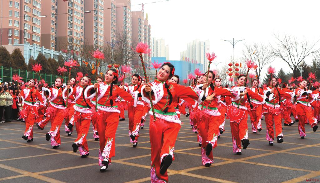 繁峙縣元宵節(jié)霸王鞭表演。(