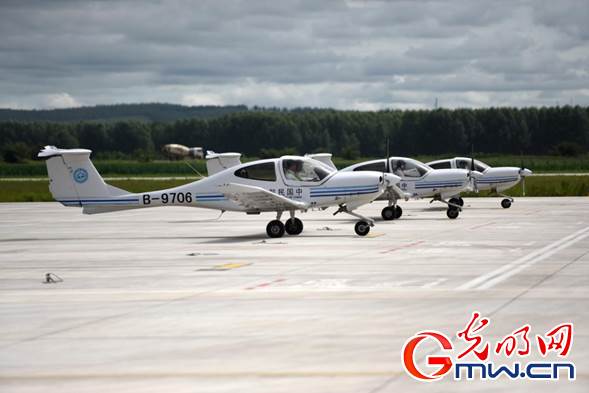 光明網(wǎng)訊(記者 趙艷艷 潘迪 李剛)“嘟嘟嘟……”在內(nèi)蒙古自治區(qū)扎蘭屯成吉思汗機場的跑道上,一架架訓練機整齊劃一,蓄勢待發(fā)。沒幾分鐘,隨著飛行學員們熟練的操作,訓練機機群直上云霄,在成吉思汗機場上空畫出一道道美麗的弧線。這些年輕的飛行學員們,來自中國民航大學內(nèi)蒙古飛行學院。