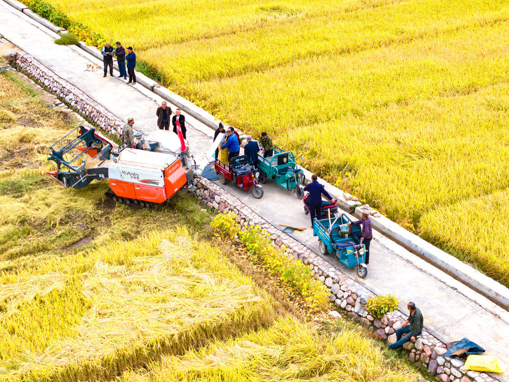 今年,當(dāng)?shù)赜晁渑妫庹粘渥?,水稻長(zhǎng)勢(shì)喜人。沉甸甸的稻穗壓彎了稻稈,預(yù)計(jì)畝產(chǎn)將再創(chuàng)新高。這片金色的豐收畫卷,不僅展現(xiàn)了現(xiàn)代農(nóng)業(yè)的高效作業(yè),更見證了農(nóng)民們辛勤勞作的碩果,為這個(gè)秋天增添了最動(dòng)人的色彩。(張文軍)