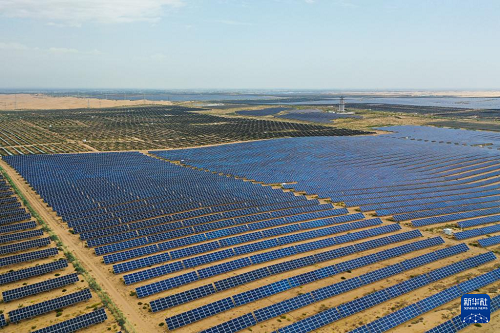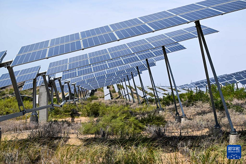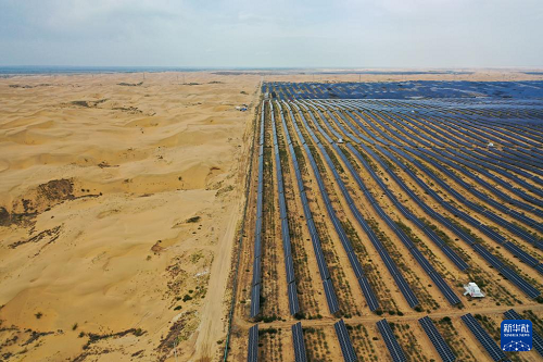 內(nèi)蒙古鄂爾多斯市達(dá)拉特旗境內(nèi)的庫(kù)布其沙漠里,一塊塊藍(lán)色光伏板鱗次櫛比、鋪陳排開,將沙海變成綠能涌動(dòng)的“藍(lán)?!?。近年來,達(dá)拉特旗依托光伏基地建設(shè),推廣應(yīng)用“光伏治沙”模式,實(shí)現(xiàn)光伏板上發(fā)綠電,板下治理沙漠生態(tài),既帶動(dòng)新能源產(chǎn)業(yè)發(fā)展,也促進(jìn)庫(kù)布其沙漠治理。