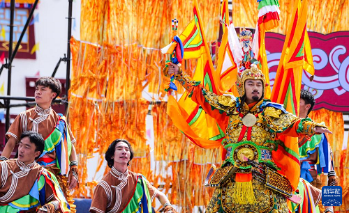 這是9月15日拍攝的開幕式上的格薩爾王舞蹈表演。(新華社記者 格桑朗杰 攝)