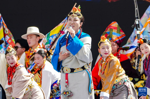 這是9月15日拍攝的開幕式上的女聲獨(dú)唱《藏東明珠》。(新華社記者 格桑朗杰 攝)