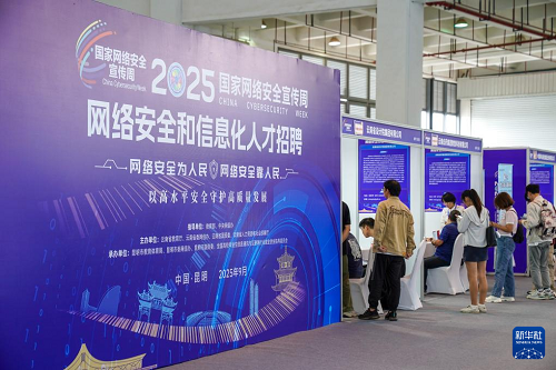 9月15日,在云南昆明舉行的2025年國家網(wǎng)絡(luò)安全宣傳周配套活動——網(wǎng)絡(luò)安全和信息化人才招聘會上,用人單位代表和求職者洽談。(新華社記者 彭奕凱 攝)