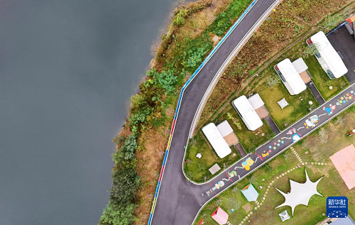 這是10月10日拍攝的青島市南墅鎮(zhèn)青山繡湖旅游度假區(qū)(無(wú)人機(jī)照片)。(新華社記者 丁洪法 攝)