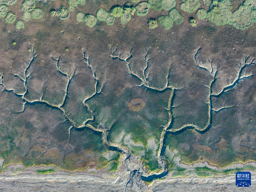 這是10月11日在浙江嘉興海寧拍攝的錢塘江退潮后的“潮汐樹”(無人機照片)。(新華社記者 徐昱 攝)