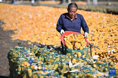 10月21日,天津市薊州區(qū)下窩頭鎮(zhèn)農民在分裝玉米。(新華社記者 李然 攝)