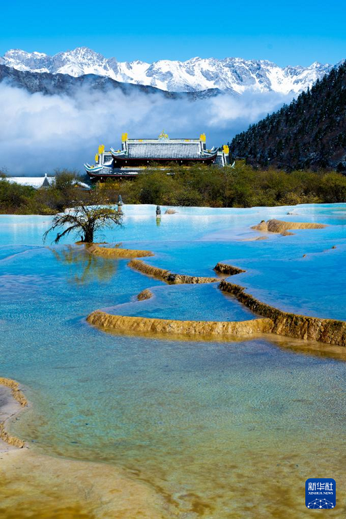 俯瞰黃龍景區(qū)五彩池(10月21日攝,無人機(jī)照片)。(新華社發(fā) 孫家鵬 攝)