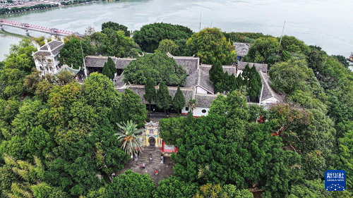 10月27日,游客在重慶奉節(jié)白帝城景區(qū)參觀(guān)(無(wú)人機(jī)照片)。(新華社記者 劉潺 攝)