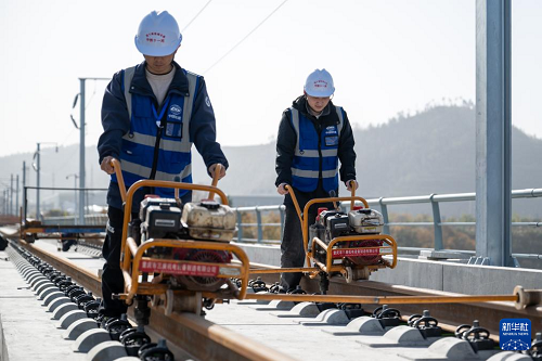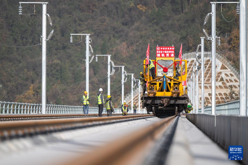 11月27日,在湖北十堰神定河特大橋上,西安至十堰高速鐵路(簡稱“西十高鐵”)全線最后一對長鋼軌鋪設(shè)落地,標(biāo)志著西十高鐵全線鋪軌工程順利完工,為后續(xù)聯(lián)調(diào)聯(lián)試奠定基礎(chǔ)。