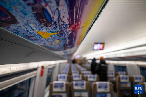 這是1月4日拍攝的“哈爾濱冰雪大世界”主題高鐵列車(chē)G1276車(chē)廂。(新華社記者 張濤 攝)