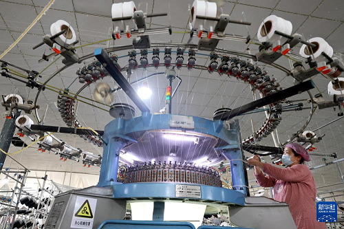 1月4日,在山東省棗莊市市中區(qū)稅郭鎮(zhèn)一家企業(yè),工人在生產(chǎn)服裝面料產(chǎn)品。(新華社發(fā) 孫中喆 攝)