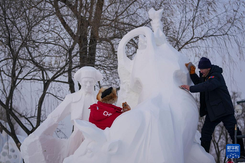 哈爾濱國際雪雕比賽:“三九”天 露芳容