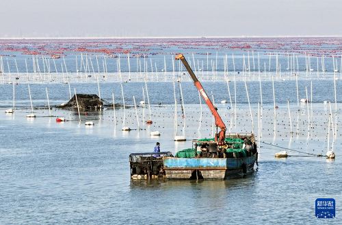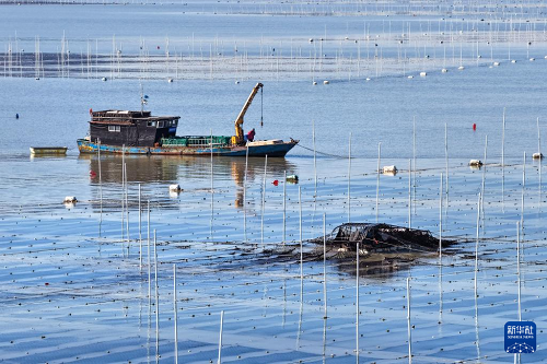 眼下,江蘇連云港市海州灣漁場養(yǎng)殖區(qū)的頭茬條斑紫菜迎來收獲時(shí)節(jié),“海上菜園”到處都是搶收紫菜的繁忙景象。