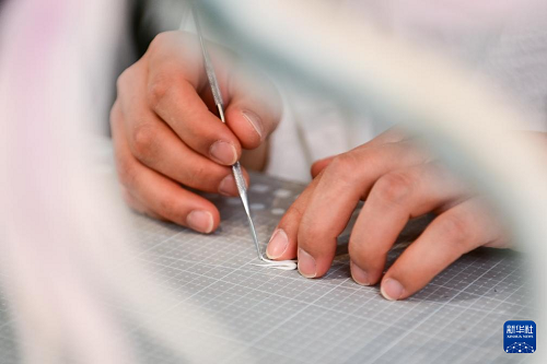 糖藝師張勃在工作室對比參考書調(diào)整糖藝零部件的尺寸(1月13日攝)。(新華社記者 鄒競一 攝)