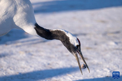 冬日時節(jié),黑龍江扎龍國家級自然保護區(qū)內(nèi)白雪皚皚,丹頂鶴在寒風中覓食,上演一幅鶴舞冬日的純凈畫面。