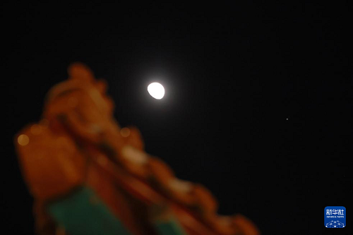 2月27日在黑龍江省齊齊哈爾市拍攝的木星伴月。(新華社發(fā) 王勇剛 攝)