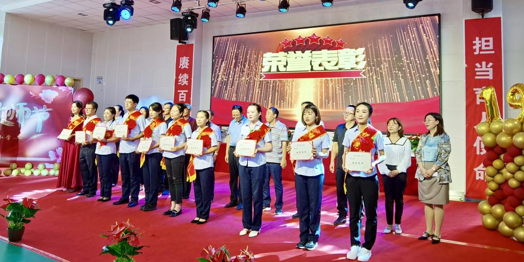 活動(dòng)現(xiàn)場(chǎng),學(xué)校對(duì)14名優(yōu)秀教師進(jìn)行了表彰,其中1名為優(yōu)秀教育工作者,8名為模范教師,5名為模范班主任。通過表彰先進(jìn),鼓勵(lì)老師們?cè)俳釉賲?,繼續(xù)發(fā)揮愛崗敬業(yè)、立德樹人,三尺講臺(tái)育英才的精神,為下一代成長教育發(fā)揮更大的作用。