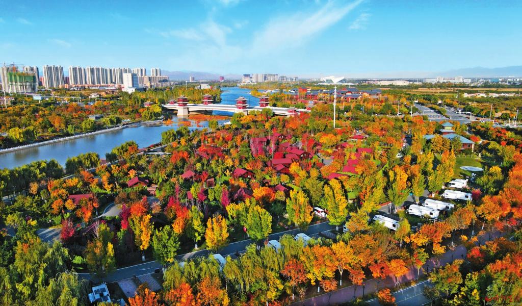 俯瞰忻州云中河房車(chē)營(yíng)地,繽紛秋色撲面而來(lái)。(本報(bào)記者 張存良攝)