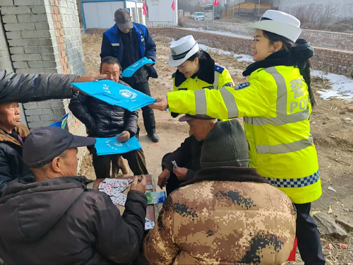 1月29日,五臺(tái)縣公安局交管大隊(duì)綜合中隊(duì)宣傳民輔警走進(jìn)國(guó)道338沿線東馬村、興鄭村,開展“平安春運(yùn) 交警同行”主題宣傳活動(dòng),將交通安全知識(shí)送到田間地頭、農(nóng)家院落,為即將到來的春運(yùn)保駕護(hù)航。