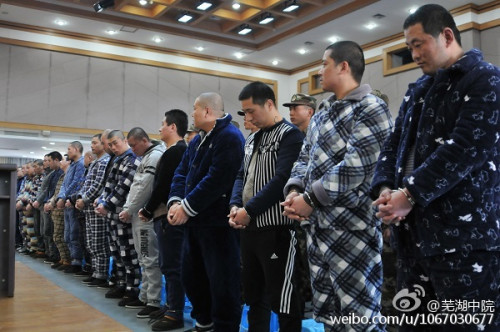 庭審現場 圖片來自:安徽省蕪湖市中級人民法院官方微博 安徽涉案人數最多的涉黑案件近日在蕪湖中院大法庭一審公開宣判,法院以組織及領導黑社會性質組織罪、開設賭場罪、聚眾斗毆罪、尋釁滋事罪、敲詐勒索罪、非法拘禁罪、非法持有槍支罪等罪名,分別對邢朝剛等67名被告人判處20年至拘役5個月不等的刑期及罰金等。該案也是目前安徽省法院審理的涉案人數最多的涉黑案件。 涉案“黑老大”邢朝剛37歲,是蕪湖市無為縣當地人,綽號“渣不子”,曾先后因尋釁滋事罪、非法傷害罪入獄,2012年5月出獄后,慢慢籠絡人手,靠打成名當上無為當地賭場霸主。賭場也成為邢朝剛涉黑團伙的主要資金來源,根據公安部門調查,自2014年10月至2015年4月初邢朝剛被抓,其賭場的毛利潤竟然高達近2000萬元。邢朝剛因犯組織、領導黑社會性質組織等罪名,一審被判處有期徒刑二十年。