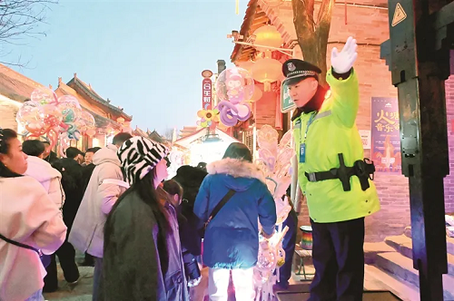 忻州市公安局忻府分局巡警大隊(duì)民警耐心為游客指路 2月20日,大年初四。早春的陽光掠過飛檐黛瓦,忻州古城主街南北大街上已人頭攢動(dòng)。從正月初一開始,這里每天都有忻府區(qū)牛斗虎、原平鳳秧歌、五臺(tái)八大套、神池踢鼓子秧歌等獨(dú)具特色的非遺代表性項(xiàng)目巡游展示,游客還能與充滿幽默的小丑以及融合科技感的巨型機(jī)甲親密互動(dòng)。 與熱鬧喜慶人群相伴而行的是執(zhí)勤民警貼心服務(wù)的身影。 上午10時(shí)許,人氣最旺的泰山廟巷,買各類風(fēng)味小吃的隊(duì)伍已經(jīng)排到了南北大街上。忻州市公安局忻府分局巡警大隊(duì)指導(dǎo)員常文彪帶隊(duì)巡邏過來,馬上在巷中增加流動(dòng)哨進(jìn)行疏導(dǎo)。從初三開始,常文彪在泰山廟巷所在的二巡區(qū)擔(dān)任巡區(qū)長。他說:“往年過年游客是漸漸多起來,今年年剛開始古城就擠滿了人?!?/p> 針對(duì)絕大多數(shù)游客是從外地趕來,今年忻州市公安局忻府分局在古城幾個(gè)出入口發(fā)放便民服務(wù)卡,一面印著溫馨提示,另一面是古城地圖和二維碼。常文彪說:“游客一旦擠丟孩子或者遺失隨身物品,一掃二維碼,求助時(shí)就能準(zhǔn)確說出自己的位置?!?/p> 轉(zhuǎn)眼已是中午,常文彪在執(zhí)勤間隙匆匆解決午飯。 南北大街上游客摩肩接踵,泰山廟巷采取臨時(shí)單行管控措施。突然,常文彪的對(duì)講機(jī)響了,一名來自河北的女士向民警求助,稱與8歲的兒子走散了。常文彪立即安撫她的情緒,隨即啟動(dòng)尋人預(yù)案。不到一刻鐘,走失的孩子便順利地找回來了。 在古城派出所,記者見到就讀于警校的大一學(xué)生李昀澤。作為公安烈士的后代,這個(gè)寒假他主動(dòng)請(qǐng)纓到這里跟班實(shí)習(xí),短短幾天讓他收獲滿滿。 為防止古城局部聚集,忻州市公安局忻府分局實(shí)行“定點(diǎn)值守+流動(dòng)巡邏”,將古城分為6個(gè)巡區(qū),安排了150名警力,疏導(dǎo)人流,解答各類咨詢,同時(shí)在拍照打卡等重點(diǎn)地段循環(huán)廣播提示安全注意事項(xiàng)。 晚上9時(shí)許,忻州古城大型主題燈展、氣勢恢宏的“打鐵花”夜間表演使人流到達(dá)一天的最高峰。常文彪、李昀澤他們在各自的崗位上堅(jiān)守和付出,以專業(yè)詮釋忠誠、以傳承續(xù)寫擔(dān)當(dāng),為游客共同筑起一道堅(jiān)實(shí)而溫暖的安全屏障。 (責(zé)任編輯:蔡文斌) |