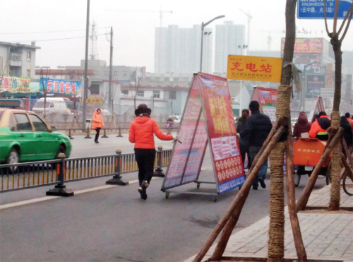 占用非機(jī)動(dòng)車道進(jìn)行廣告宣傳(王國(guó)棟 攝)