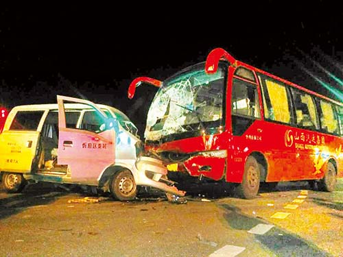 本報訊 7月10日22時20分左右,在忻州城區(qū)慕山橋北端的十字路口,一輛城際客運汽車與一輛面包車相撞,客運汽車前擋風(fēng)玻璃粉碎毀損,面包車前部嚴(yán)重變形,面包車上的傷者被隨后趕到的救護(hù)車送往醫(yī)院搶救,交警接警后也在第一時間趕赴現(xiàn)場調(diào)查事故原因、處理毀損車輛。 十次事故九次快。記者提醒司機朋友一定要按照交通規(guī)則駕駛行車,遇到十字路口一定要減速慢行,轉(zhuǎn)彎車輛要禮讓直行車輛,以有效杜絕交通事故的發(fā)生。(魯明強 攝影報道) (責(zé)任編輯:李冬梅) |