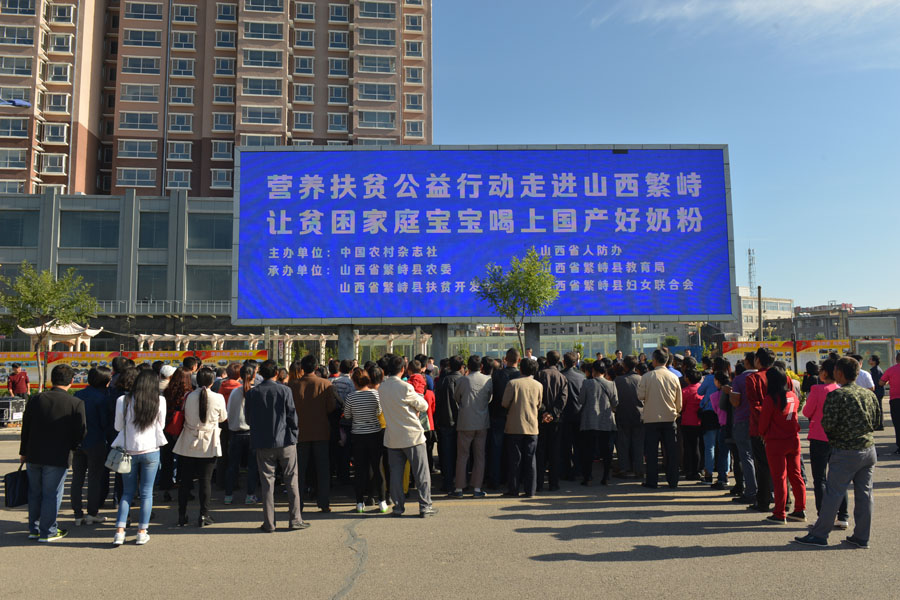 此次活動(dòng)得到了繁峙縣農(nóng)委、教育局、扶貧開發(fā)中心、婦聯(lián)等單位的支持?;顒?dòng)現(xiàn)場(chǎng),中國(guó)農(nóng)村雜志社總編彭小元、省人防辦主任孫群等領(lǐng)導(dǎo)現(xiàn)場(chǎng)向3個(gè)雙胞胎家庭代表、15個(gè)貧困家庭代表、5個(gè)貧困老人代表發(fā)放了奶粉。此次活動(dòng),北京三元食品股份有限公司共向繁峙縣杏園鄉(xiāng)、光裕堡鄉(xiāng)提供了價(jià)值70萬元的嬰幼兒配方奶粉、兒童成長(zhǎng)奶粉和2000冊(cè)營(yíng)養(yǎng)扶貧手冊(cè),還可在5年內(nèi)享受優(yōu)惠價(jià)。