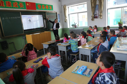 近日,在靜樂縣愛樂希望小學,學生正通過交互式多媒體教學方法上課。老師高興地說:“有了多媒體真方便,以前講一個例題要花幾分鐘抄寫在黑板上,現在只需幾秒鐘就顯示在頻幕上,既節(jié)省時間又提高課堂效率?!苯陙恚摽h加大教育投資力度,改善辦學條件,為學生上課提供便利。(閆曉梅 攝)