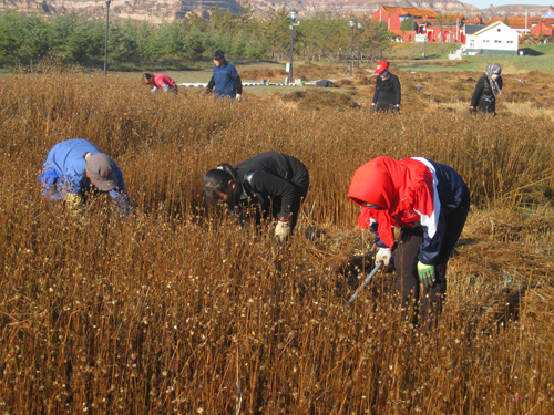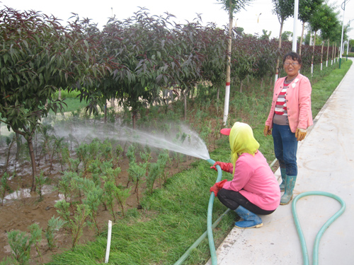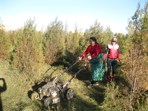 11月7日,河曲縣濱河濕地公園女工手推割草機(jī)割刈樹(shù)地的枯萎花草,顯得風(fēng)采奕奕。今年以來(lái),數(shù)十名女工撲下身子,與漢子們一道建設(shè)450畝濕地公園,一次又一次植綠、澆水、鋤草,近日還為綠籬色帶建“防寒屋”、為樹(shù)木穿“保暖衣”、收拾花境“殘局”,成為新建公園里四季美麗的風(fēng)景線(xiàn)。(賈金理 攝)