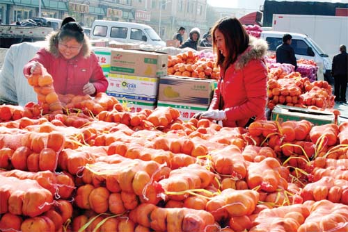 11月11日,原平市農(nóng)貿(mào)市場(chǎng)上紅紅火火,這是市民們正在挑選金黃色柿子。該市合理化布局建市場(chǎng),使農(nóng)副產(chǎn)品有了好的銷售平臺(tái),既方便市民購(gòu)買又促進(jìn)農(nóng)民增收。(趙春曉 攝) (責(zé)任編輯:李冬梅) |