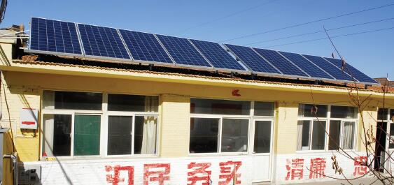 五寨縣大力發(fā)展光伏發(fā)電扶貧,利用村民屋頂安裝太陽(yáng)能發(fā)電設(shè)備,發(fā)下的電并入電網(wǎng),賣(mài)電收入給百姓分紅,雖然投資不大收入不算高,但成為百姓致富的一項(xiàng)門(mén)路。圖為經(jīng)堂寺鄉(xiāng)村民屋頂?shù)墓夥l(fā)電設(shè)備。(楊峻峰 攝)