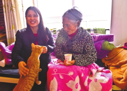 劉琳輕輕推開(kāi)門(mén),朝里張望,奶奶正在睡覺(jué),窩在奶奶懷里的貓豎起耳朵,一直看著她。這只貓叫“鐺鐺”,劉琳去學(xué)校上課的時(shí)候,就只有鐺鐺陪著奶奶。坐在床沿,看著睡夢(mèng)中的奶奶,劉琳露出了微笑。