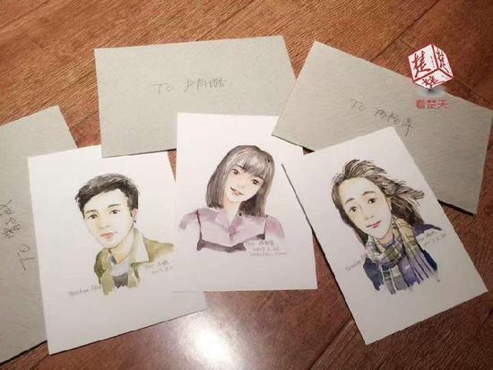 近日,該班學生順利結束畢業(yè)答辯,范晶晶給班上每位同學送出了由自己親手繪制的水彩明信片,明信片正面是她為每個學生手繪的人物肖像,反面則是她親手寫上的昵稱和對學生的祝福。