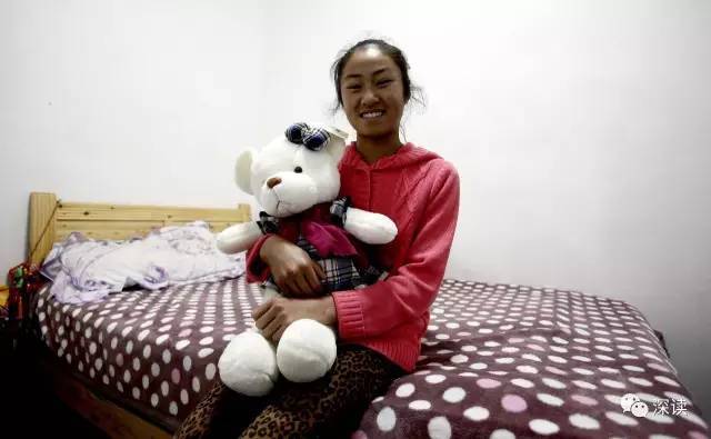 臥室里,有一只穿著裙子的白熊毛絨玩具,這是衣伍木的老師不久前剛送給她,標(biāo)簽都還未摘下。這是衣伍木長這么大收到的第一個毛絨玩具,她很是喜歡。