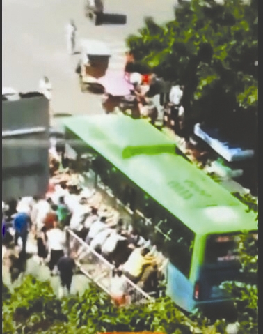 陳正龍立即高聲呼喊過路的市民營救孩子,很快,有人撥打了報警電話,數(shù)十位市民紛紛聚集過來。越來越多的人加入到救援隊伍里來,人數(shù)增加后,大家又在指揮下,統(tǒng)一聚集到公交車左側(cè)面,想把公交車抬起,但盡管拼盡全力,也沒把公交車抬動。