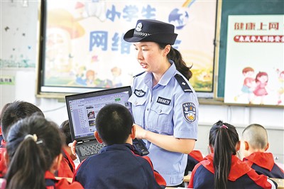 6月13日,江蘇省海安市公安局墩頭派出所民警走進轄區(qū)小學(xué),開展未成年人預(yù)防網(wǎng)絡(luò)沉迷和網(wǎng)絡(luò)陷阱的安全教育,引導(dǎo)鄉(xiāng)村兒童樹立正確的上網(wǎng)觀,做到文明健康上網(wǎng),增強網(wǎng)絡(luò)安全意識。周 強攝(人民視覺)