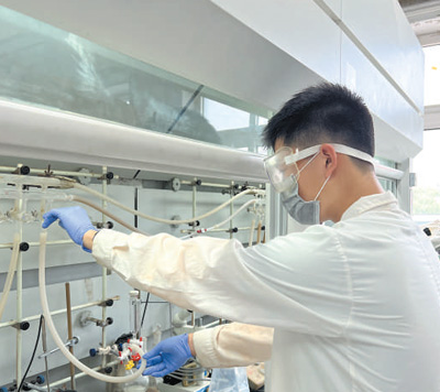 北京市第四中學(xué)學(xué)生張子鳴在北京師范大學(xué)有機(jī)化學(xué)實(shí)驗(yàn)室做實(shí)驗(yàn)。