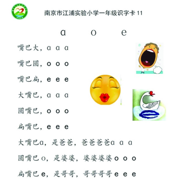 南京市江浦實驗小學語文老師夏光清表示,單韻母發(fā)音,口形不能變。“我會要求學生發(fā)音時,從頭到尾口形都是圓的。如果發(fā)‘窩’音,嘴巴先發(fā)‘w’音,一開始嘴巴是撅著的,然后變成圓的,前后是變化的。”