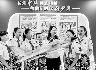9月14日,內蒙古自治區(qū)呼和浩特市玉泉區(qū)五塔寺東街小學學員們學習國防知識,增強國防觀念。丁根厚攝/光明圖片
