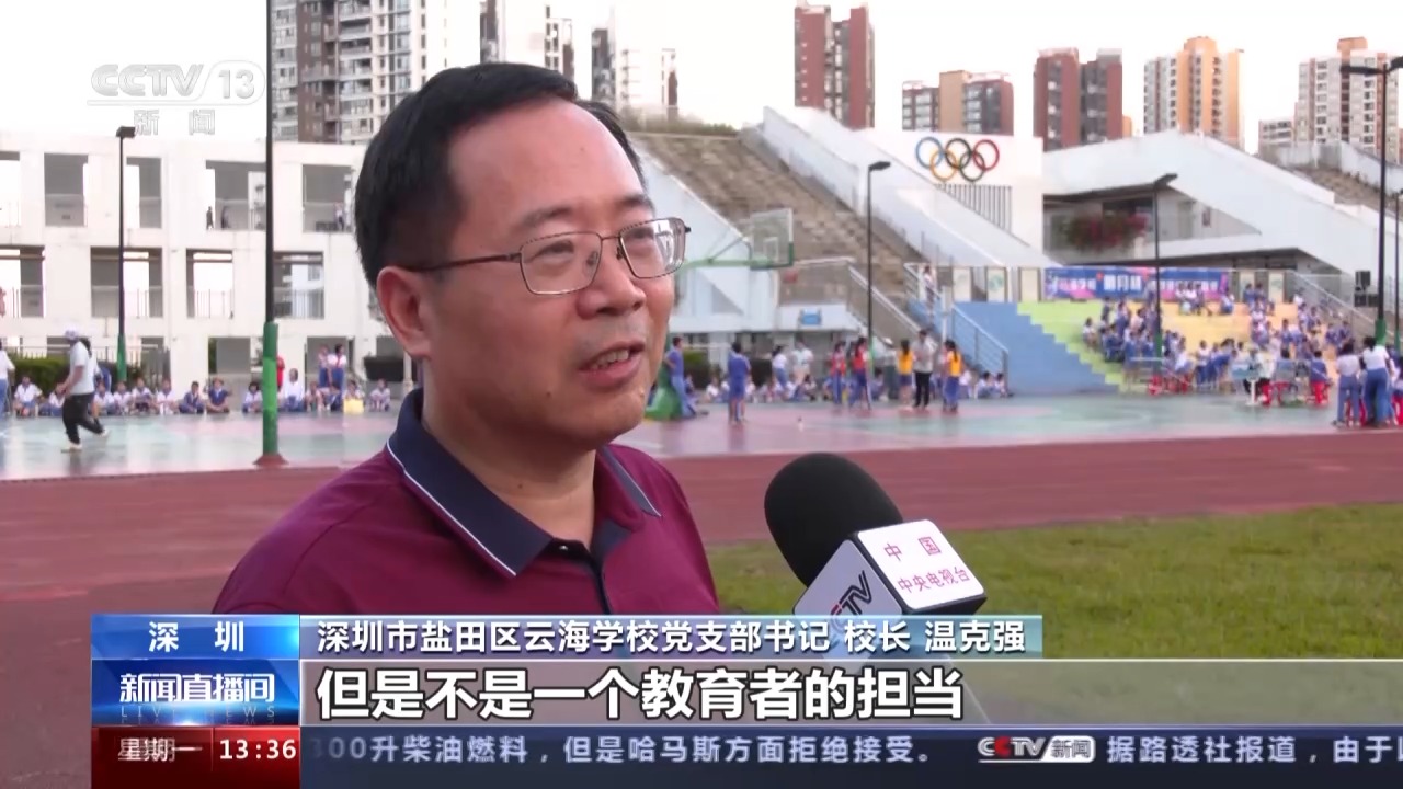 深圳市鹽田區(qū)云海學(xué)校黨支部書記、校長 溫克強:怕出事情,怕?lián)?zé)任,就把學(xué)生課間圈養(yǎng),確實這個是省時省力,但是不是一個教育者的擔(dān)當(dāng),也不是一個學(xué)校的擔(dān)當(dāng)。應(yīng)該尊重教育規(guī)律,要為孩子們的健康著想。希望我們的孩子在這邊讀9年,他會科學(xué)地鍛煉,有這種鍛煉的好習(xí)慣,熱愛體育,熱愛生活,這就是我們追求的方向和育人目標(biāo)。