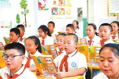 敦煌市東街小學(xué)學(xué)生在課堂上誦讀《涼州詞》。中國教育報記者 尹曉軍 攝