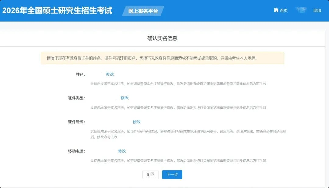 確認(rèn)實(shí)名注冊(cè)信息后,考生要按照《2026年全國(guó)碩士研究生招生工作管理規(guī)定》要求填寫正確的學(xué)歷(學(xué)籍)信息。