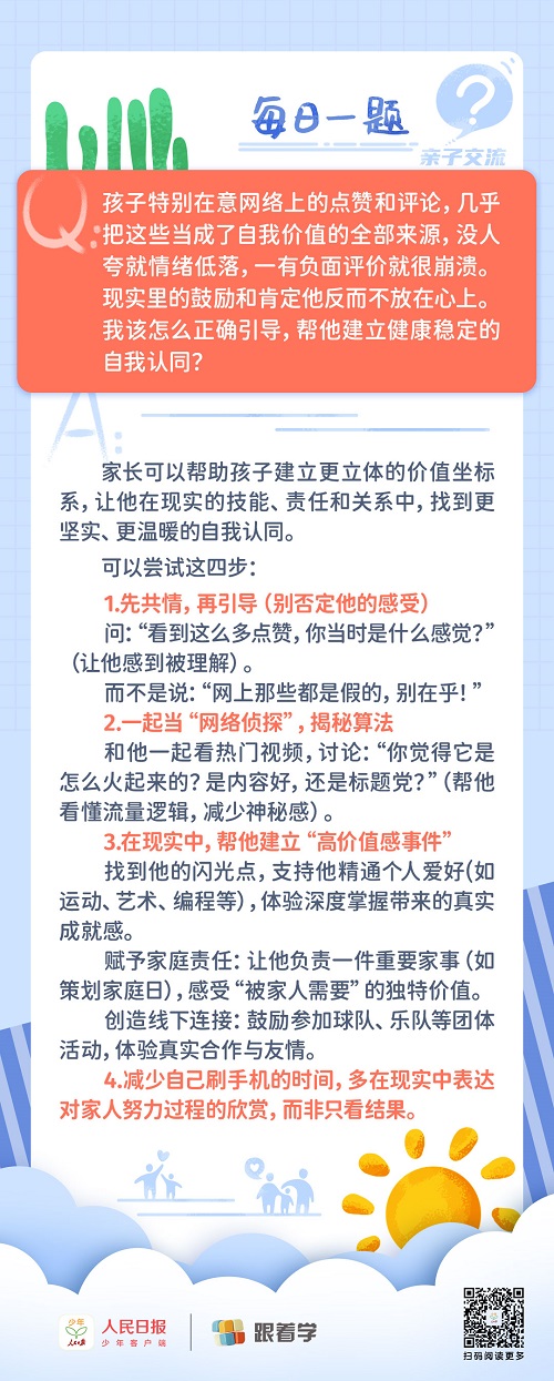 每日一題丨孩子過(guò)度依賴(lài)網(wǎng)絡(luò)點(diǎn)贊、評(píng)論來(lái)獲得自我認(rèn)同,家長(zhǎng)該如何正確引導(dǎo)?