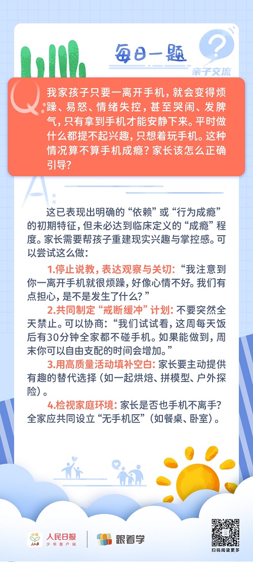 每日一題丨孩子離開(kāi)手機(jī)就煩躁、易怒,這屬于手機(jī)成癮嗎?